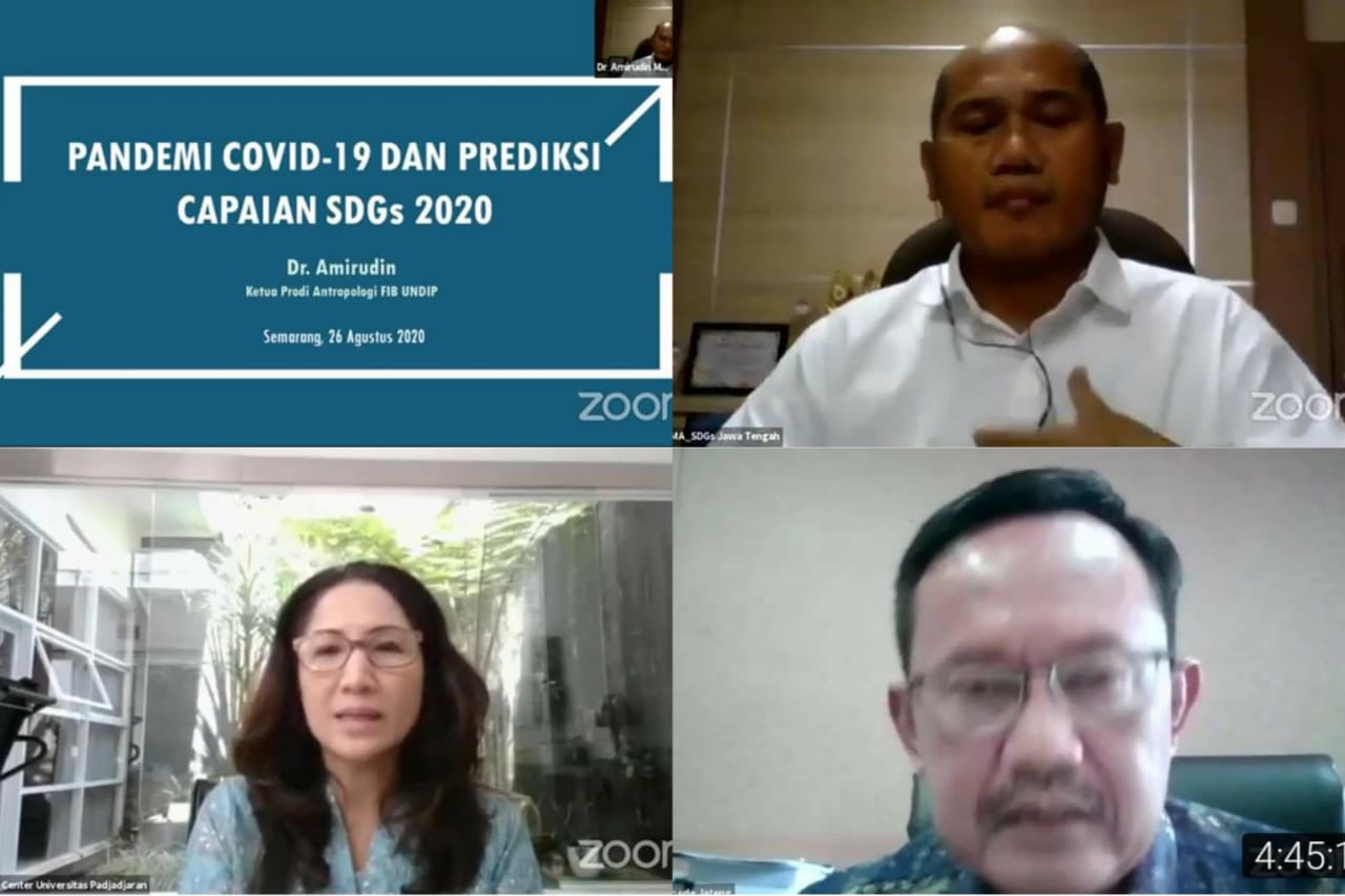 Hadir sebagai pemantik diskusi Direktur SDGs Center UNPAD Prof. Dr. Zuzy Anna, dan Dr. Amirudin Tim Ahli Sekreratiat SDGs Jawa Tengah dan Ketua Prodi Antropologi FIB UNDIP. Moderator: Drs. Indiarto MPd, Kasubbid PMS.