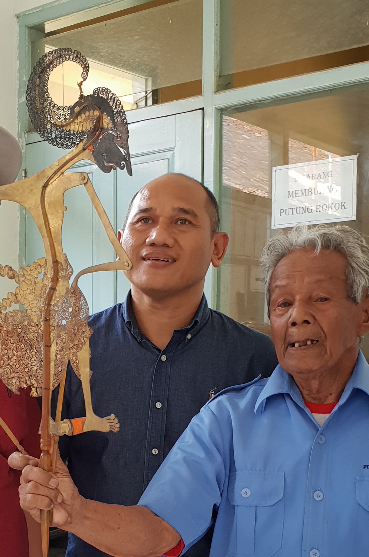 MENELUSURI – ragam (motif) batik Wonosobo dengan pendekatan geneologis dalam kegiatan riset “Menemukan Motif Batik sebagai Identitas Batik Wonosobo,” akhirnya nyangkut pula sampai di rumah Ki Dalang Makim Kartosudarmo (84 tahun). Ia adalah dalang “othok obrol” yang merupakan generasi ke-11 dari dalang-dalang di keturunan Klan Ganda. Di situ kami diperlihatkan wayang Janoko yang dibuat tahun 1700an oleh Ki Dalang Ganda Wiragaru. Terpampang dalam sunggingan, imaji batik disematkan dalam kain yang dipakai tokoh Janoko.
